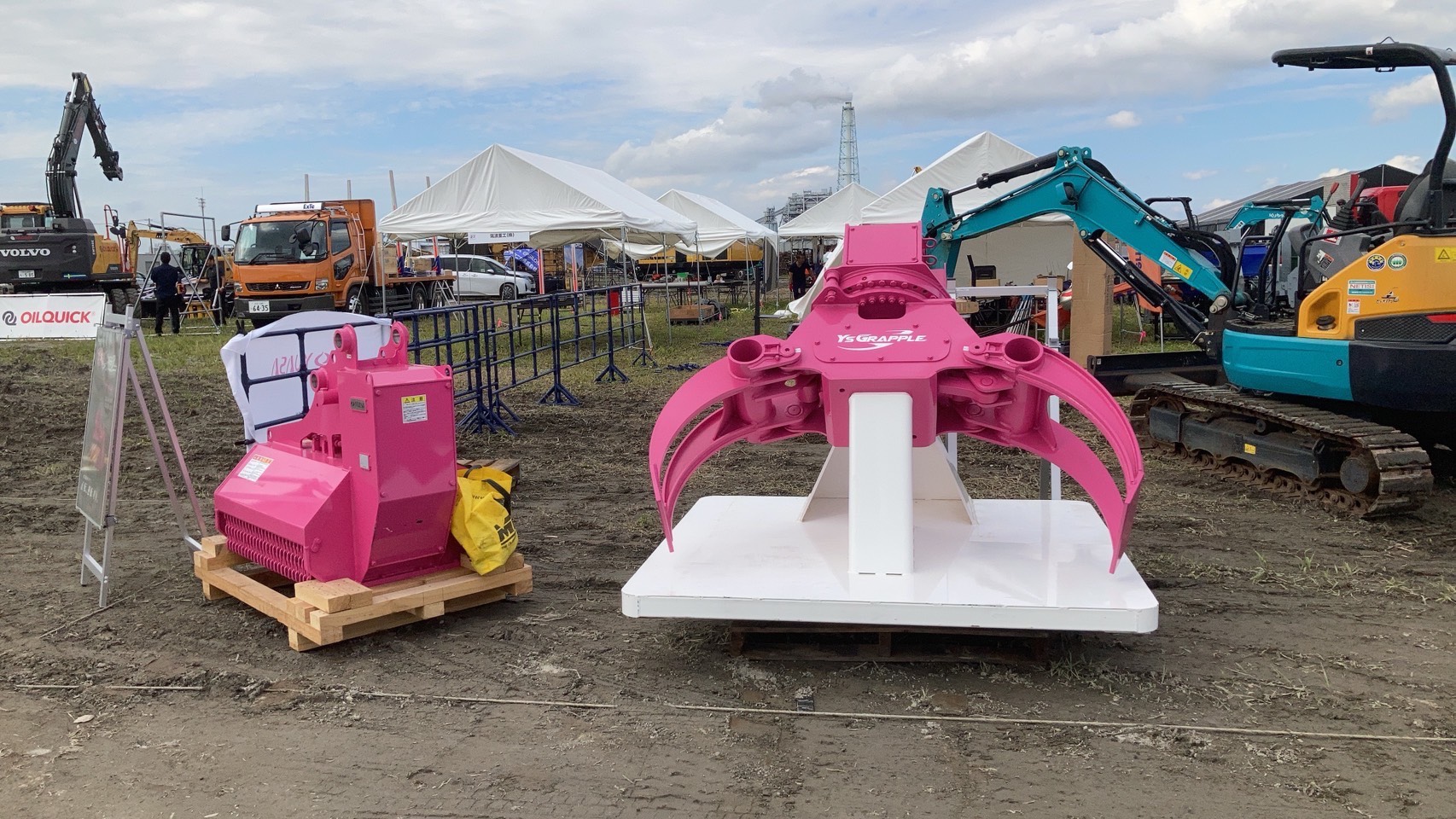 今年も豊島重機さんのブースをお借りして、木材グラップルと草刈りアタッチメントを展示させていただきました。