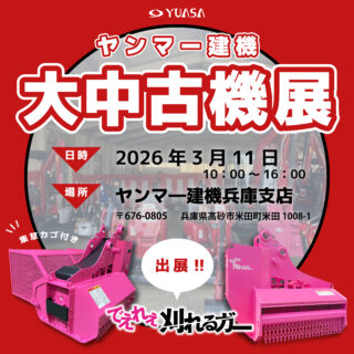 【ヤンマ―建機 大中古機展】に出展します。 3月11日(水)に、ヤンマー建機兵庫支店で開催されます。 ユアサ製作所からは、『で...
