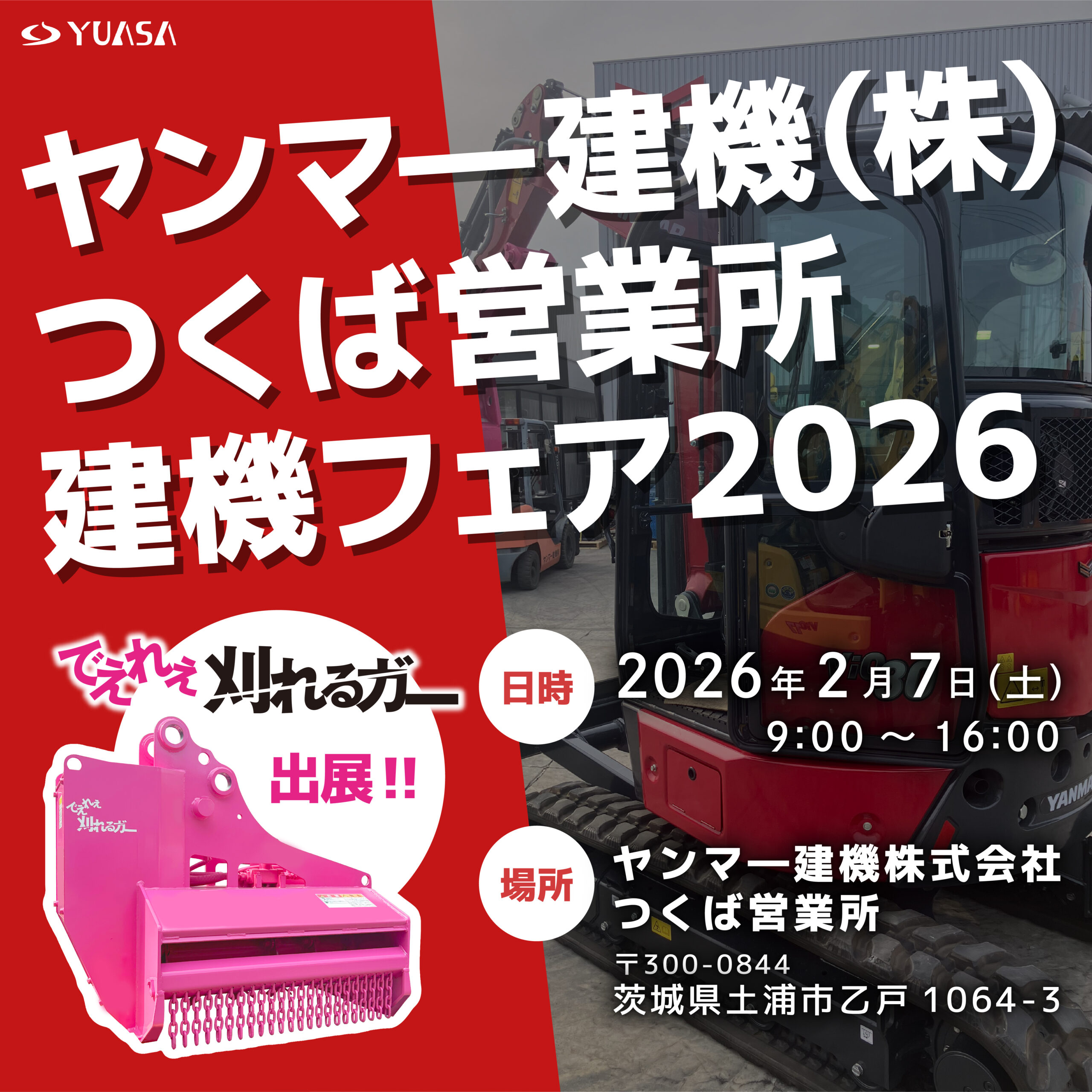 2月7日(土)に、ヤンマー建機(株)つくば営業所で開催されます。