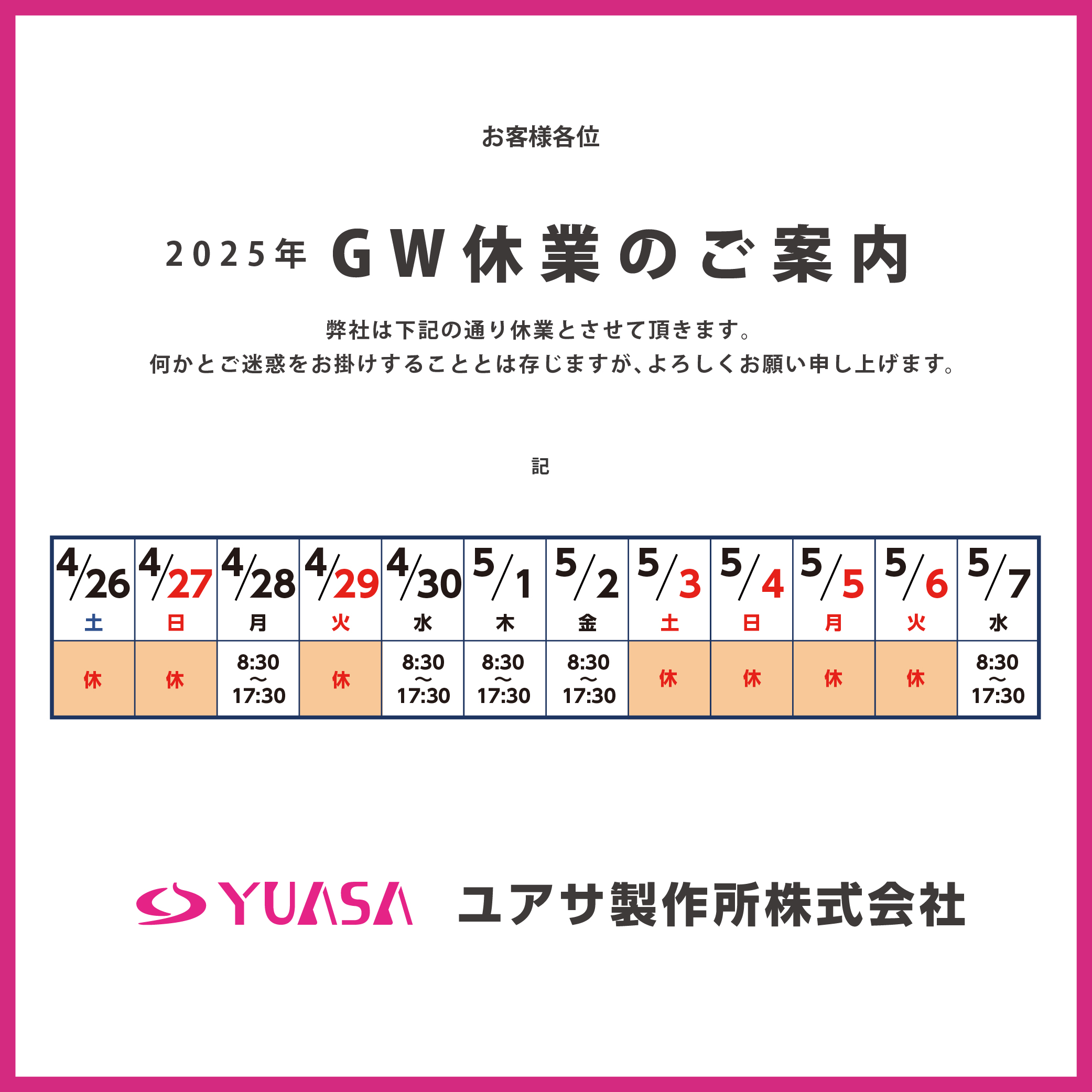 GW休業のご案内